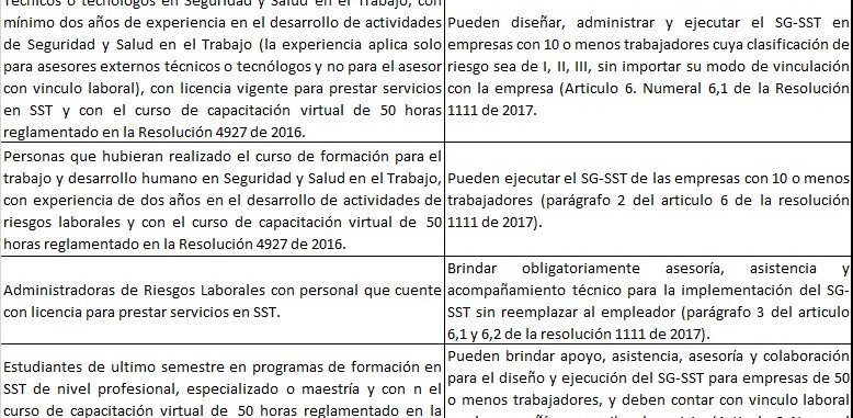 A partir de la Resolución 4927 de 2016 y 1111 de 2017 se aclaran y definen los perfiles y alcances de quienes diseñen, administren y ejecuten el SG-SST.